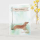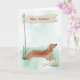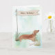 Long-bodied and full of charm, this Tan Dachshund birthday card captures the playful spirit of this beloved breed. The illustrated pup stands proudly in a soft watercolor outdoor scene, with a rustic flag-style banner waving above. A delightful way to send birthday cheer to any Dachshund fan!