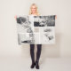 Tan Grey Square Box And Monogram 4 Multi Photo Collage With Simole Minimalist White Grid Lines Wedding Fleece Blanket.