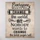 Tan Linen Look Change the Toilet Paper Bathroom Poster