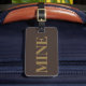 Luggage tag with name and address with a tan "MINE" on a brown background colour. Personalise with your name and address information using the easy templates.