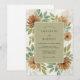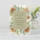 This design features warm tan watercolor florals and sage green foliage, creating an earthy and organic mood. Painterly botanical elements surround the center, perfect for a rustic outdoor setting. The palette of olive and brown evokes a natural feel suitable for a woodland or boho aesthetic.