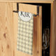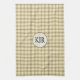 Tan and brown plaid covers this kitchen towel Casual, rustic, always in style. The neutral colours ensure that it will go with any colour scheme. Personalise with your name or initials in a brown and tan circle.