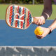 Tan Rustic American Flag Monogram Pickleball Paddle