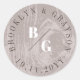 Modern Classic Tan Taupe Brown Rustic Woodgrain Texture Monograms, Winter Wedding Party Favour Sticker / Envelope Seal.