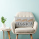Pillow features an original marker illustration of a tan t-strap leather character shoe, printed on a grey background. Simply personalise with the name of your favourite dancer for a unique piece of dance-themed decor!