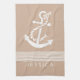 Tan & White Stripes With Nautical Anchor Tea Towel