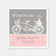 Fun wedding design featuring a flower covered tandem bicycle. A three tier wedding cake is on the back bumper and two love birds with hearts complete the theme. Customise it with your own personalised text. Complete wedding collection available. PinkInkArt original!