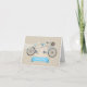 Bicycle-themed weddings are a fun trend in themed weddings. On this faux linen background wedding thank you card, a tandem bicycle symbolises the married couple-to-be riding off together. The bride's seat has a wedding veil wrapped around it and the groom's seat has an untied bow tie wrapped around the handlebars. A bridal bouquet is placed in the bike's basket. A thank you message stands out in a sky blue banner underneath the bike. A customised message prints inside. This message can also be deleted in order to leave the interior blank for you to handwrite your own personal message. Available with matching products with a option for bride's and groom's bike.
