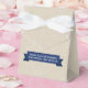 Bicycle-themed weddings are a fun trend in themed weddings. On this faux linen background favour box, a tandem bicycle symbolises the married couple-to-be riding off together. The bride's seat has a wedding veil wrapped around it and the groom's seat has an untied bow tie wrapped around the handlebars. A bridal bouquet is placed in the bike's basket. Your own message stands out in a navy blue banner on front and back. Perfect to wrap your wedding or engagement gift. Available in alternate colours with a option for bride's and groom's bike.