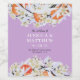 Elegant and chic wedding wine label with beautiful tangerine wreath. Floral botanical illustration with spring delicate flowers, blooming branches and citrus. Orange, pastel and lilac colours. Personalise with your names, date and wedding venue.