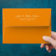 © Socialite Designs. Add a touch of timeless elegance to your wedding stationery or correspondence with this customisable tangerine envelope. Featuring a vibrant orange tone and a classic design, the envelope includes a customisable return address printed gracefully on the back flap. Perfect for weddings, bridal showers, baby announcements, or any stylish event that deserves attention to detail. Whether you're sending heartfelt letters or formal invitations, this envelope elevates your message with warmth and sophistication.