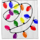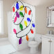 This shower curtain has a Christmas design of tangled lights in red, blue, yellow, green, pink, and purple.