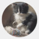 Tangled Up In Fun Black and White Kitten Classic Round Sticker