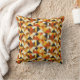 Square throw pillow with tiles of tangrams, a pattern of geometric shapes in bright warm colours. Red, brown, orange, yellow, white.
