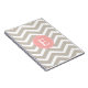 Customise this vibrant peach pink, tan brown and white chevron pattern and monogram circle with the name of your choice.