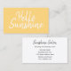 Minimalist, modern business card with the text "Hello Sunshine" on the front of the card, perfect for a beauty salon, makeup artis, spray tan or tanning salon.