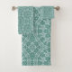 Teal and ready to delight this versatile design is a welcome addition to your bathroom decor. Design by Ruth Jolly.