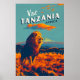 Immerse yourself in the majestic beauty of Tanzania with this stunning vintage travel print poster, capturing the essence of Africa's diverse and awe-inspiring landscapes. Tanzania, renowned for its incredible wildlife and dramatic scenery, offers an unparalleled adventure for nature lovers and explorers.