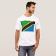 Here is our Tanzania flag T-shirt. The flag was adopted in 1964. The colour green represents vegetation. The gold represents the country's mineral deposits. The blue represents the Indian Ocea. Check out these Tanzanian products.