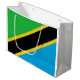 This design features the national flag of Tanzania (officially known as the United Republic of Tanzania), which is a country in East Africa; it is located within the African Great Lakes region. Mount Kilimanjaro, which is Africa's highest mountain, is situated in northeastern Tanzania. Tanzania borders Uganda to the north; Kenya to the northeast; Comoro Islands and the Indian Ocean to the east; Mozambique and Malawi to the south; Zambia to the southwest; and Rwanda, Burundi and the Democratic Republic of the Congo to the west. The national language of Tanzania is Swahili. The capital city of Tanzania is Dodoma, while the largest city in Tanzania is Dar es Salaam. Other major cities and towns in Tanzania include Mwanza, Arusha, Mbeya, Morogoro, Tanga, Kahama, Tabora and Zanzibar City.