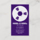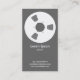A stylish business card template with a reel to reel tape spool motif. Main company details on the front, with name and personal contact on the back.
