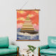 The polyester fabric displayed many wrinkles and several sharp creases throughout. At the bottom of the tapestry, I noticed a bulge in the fabric because it was not pulled tight enough before being connected to the wooden boards. It took me over an hour to spay water on the tapestry before putting it on an ironing board where I used a warm iron over a polyester cloth to remove the wrinkles and creases in the material. I was able to get out the wrinkles and creases that made that tapestry look as beautiful as its picture.