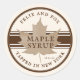 An antique white background with brown text in an old-style font. Brown band behind sugar maple leaf gives this label a vintage look.