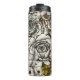 Hand-drawn vector pattern with various flowers- roses, cosmos, peony and tarantula spiders