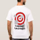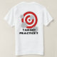 The front reads “Big Pete’s Firing Range’ and the back features a large ‘bulls eye’ with the question “Target Practice?” presented in a bold, edgy font.