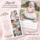 Esta tarjeta de agradecimiento de bautismo rosa, floral y multifoto para niñas presenta hermosos ramos de rosas de acuarela con vegetación botánica. El frente incluye 3 fotos, una caligrafía elegante y una simple cruz cristiana y los detalles de su evento escritos en una tipografía serif de estilo vintage en un tono súper elegante de gris carbón. En la parte de atrás hay espacio para otra foto, que está enmarcada por más flores de acuarela, vegetación botánica y una cruz, así como un versículo de la biblia, que puedes cambiar a lo que prefieras. El reverso de la tarjeta puede enmarcarse después de su evento y conservarse como un recuerdo especial de la ocasión. Diseñado como parte de mi elegante colección Rosy Pink para bebés y niños, asegúrese de explorar los otros artículos de la suite para crear un estilo elegante y coordinado para su bautizo. Si necesita ayuda para personalizar esta invitación o desea que cree elementos adicionales que coincidan, comuníquese conmigo (Dawn) en admin@albamarie.com. ¡Estaré feliz de ayudar! Pink Spanish baptism thank you card for girls.