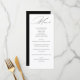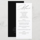 Elegante Tarjeta de Menú de Boda en Caligrafía, Blanco y Negro. Con las minutas personalizadas, podrás compartir con tus invitados los detalles del menú de tu boda, manteniendo un diseño coherente con tus invitaciones. ¡Una opción perfecta!