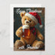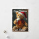 This Christmas card is designed especially for friends who know how to enjoy life. In the center, an adorable teddy bear appears dressed in a Santa hat and Christmas scarf, enthusiastically holding a mug of frothy beer. Its playful and friendly expression invites you to have fun and share special moments. Perfect for sending good wishes and celebrating the Christmas spirit together in a fun and unique way.