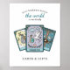 This tarot themed baby shower poster features a hand-drawn stack of baby-themed tarot cards with reimagined designs perfect for a fortune teller themed baby shower! With a World thank you card in the centre of the spread, and a message that reads, “your kindness means the world to us” this sign perfectly coordinates with a tarot inspired celebration, making it a thoughtful and decorative addition to your party setup. Designed to be framed and displayed as part of your shower decor, this sign is sure to impress your guests! Suited for celestial baby showers, magical baby shower aesthetic, or showers around Halloween. Available as a printed poster or a downloadable file you can print at home for a more affordable option. Coordinates with other items in the tarot baby shower collection. Sizing: Why 8x10 Is Ideal: