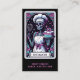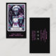 A unique Tarot themed baker, pastry chef black business card featuring a skeleton with cake and whisk. A unique style with skeleton baker in chef's hat.