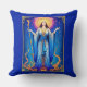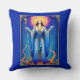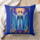 Pillow in the tarot card "The Queen of Wands". Standing regally in flowing blue robes, radiant under a golden halo, she holds a wand, symbolising power and creativity. Surrounded by fiery branches and stars, she exudes confidence, warmth, and spiritual strength
