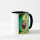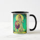 Mug in the tarot card, titled "Strength," depicting a graceful woman in a flowing white gown, holding a wooden staff, embodying inner courage and composure. She stands beside a powerful lion, symbolising raw strength tamed by compassion.