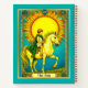 Journal in an illustration of the tarot card, “The Sun,” depicting a radiant sun dominating the sky, its golden rays surrounding a boy riding a white horse. He symbolises innocence and vitality, while the vivid blue background radiates joy and clarity.