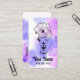 A mystical business card design perfect for tarot card readers, psychics, and spiritual advisors. Features a tarot card illustration with The Sun card on a dreamy purple and pink watercolor background. Stand out and share your energy with this bold, spiritual business card.