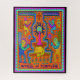 TAROT CARD - WHEEL OF FORTUNE - Vibrantly coloured geometric patterns and abstract figures surround a central motif that resembles a wheel with a radiating design. Below the wheel, a row of what appears to be vessels or containers is depicted, while the title "WHEEL of FORTUNE" is prominently displayed at the bottom in bold lettering.