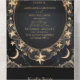 Stunning Celestial Design: A striking midnight black backdrop with intricate star and moon illustrations, adding a touch of cosmic elegance and wonder to your wedding announcement.
