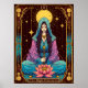 Poster in "The High Priestess" tarot card, featuring a serene, meditative figure with a crescent moon on her forehead, holding a golden sceptre. Surrounded by celestial symbols, a glowing halo, and a blooming lotus, it embodies intuition, wisdom, and spiritual awakening in intricate, mystical detail.