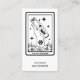 Tarot pet groomer business card in crisp black and white, featuring a hand holding clippers above a small paw print, framed like a tarot card with stars and flowers and the words The Pet Groomer at the base, with your name set in simple modern type beneath the artwork and your phone, email, website, location, and social media icons arranged cleanly on the back so pet salons, mobile groomers, and stylists can share contact details in a look that feels both mystical and professional, easily customized with your own information.
