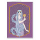 Pencil drawing on 9″×11″ sketchbook paper coloured on computer The Hermit (IX) is the ninth trump or Major Arcana card in most traditional Tarot decks.The Hermit has internalised the lessons of life to the point that he is the lesson. The Hermit, as a kind of shamanistic hero, has made the complete journey – both the withdrawal and the return. The card shows an old man carrying a staff in one hand and a lit lantern containing a six-pointed star in the other. I decided to show the Hermit as a cloaked woman carrying a staff and instead of a lantern I put a candle.