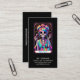 An editable nail artist Tarot themed business card template design, with QR code, social media handles and vintage typography in pink and white on a black background. Scannable QR Code instantly directs clients to your booking page.