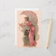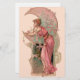 Elegant Art Nouveau vintage woman figure with moon and flowers in antique pink.