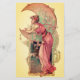 Elegant Art Nouveau vintage woman figure with moon and flowers in antique pink.