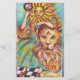 The Major Arcana The Sun. Mysterious allegorical contemporary painting .Colourful watercolor painting with gold foil by Bulgan Lumini (c). Magic gold sparkles in bright teal,blue green ,yellow colours .Mixed media painting with golden and silver foil .