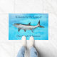 Tarpon fish doormat with custom saying. Blue ocean water design with two lines of text at top and bottom. Sample wording reads, "Welcome to the home of - one great fisherman". A single, large tarpon image is in the centre. Makes a great gift for the deep sea, sport fisherman, fishing guide, or anyone who loves to fish in saltwater.