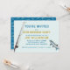 Adult fisherman birthday party invitation. A saltwater tarpon fish and fishing rod design, with lines of custom text in blue and golden yellow. Pale blue cards with design specific for any guy who loves to fish. Also buy as a download to share digitally.