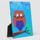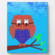 A tartan owl shaped by hearts. Digital image. Original cartoon character.